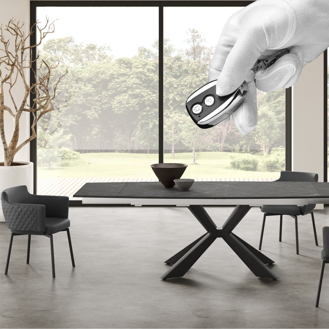 Casabianca Home’s patented motorized tables feature cutting-edge technology designed for effortless functionality and durability. These plug-and-play tables allow to fit from 6 to 12 people with a simple push of a button.