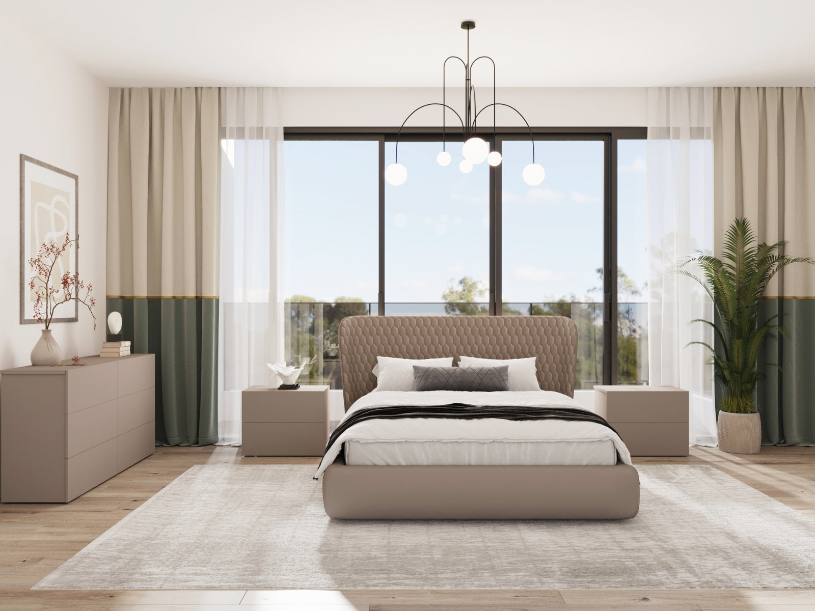 Elevate your bedroom with the Agoura Set from Casabianca Home-a perfect blend of modern sophistication and practical design. This 4-piece set includes a king-size storage bed upholstered in sleek taupe PU leather paired with coordinated taupe casegoods to complete the look.