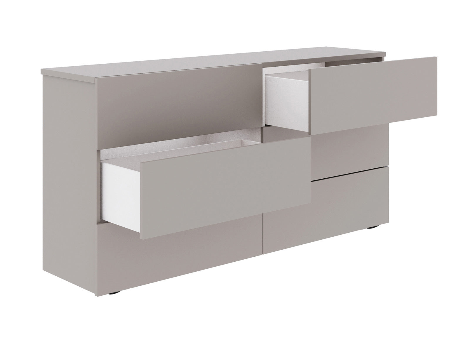 The matching taupe casegoods provide ample storage and clean contemporary lines. Each piece is crafted with durable quality materials to ensure long-lasting performance and timeless appeal.