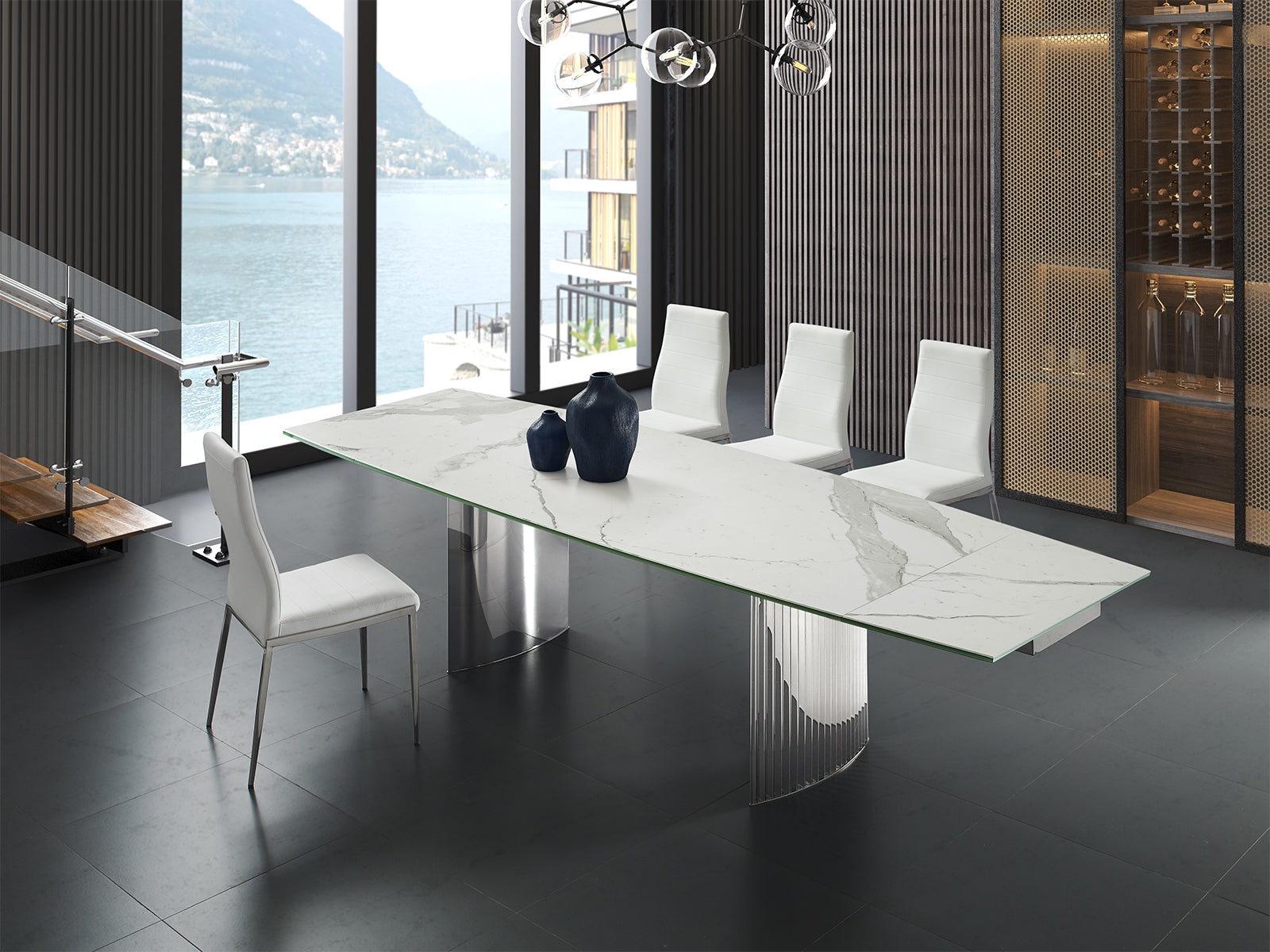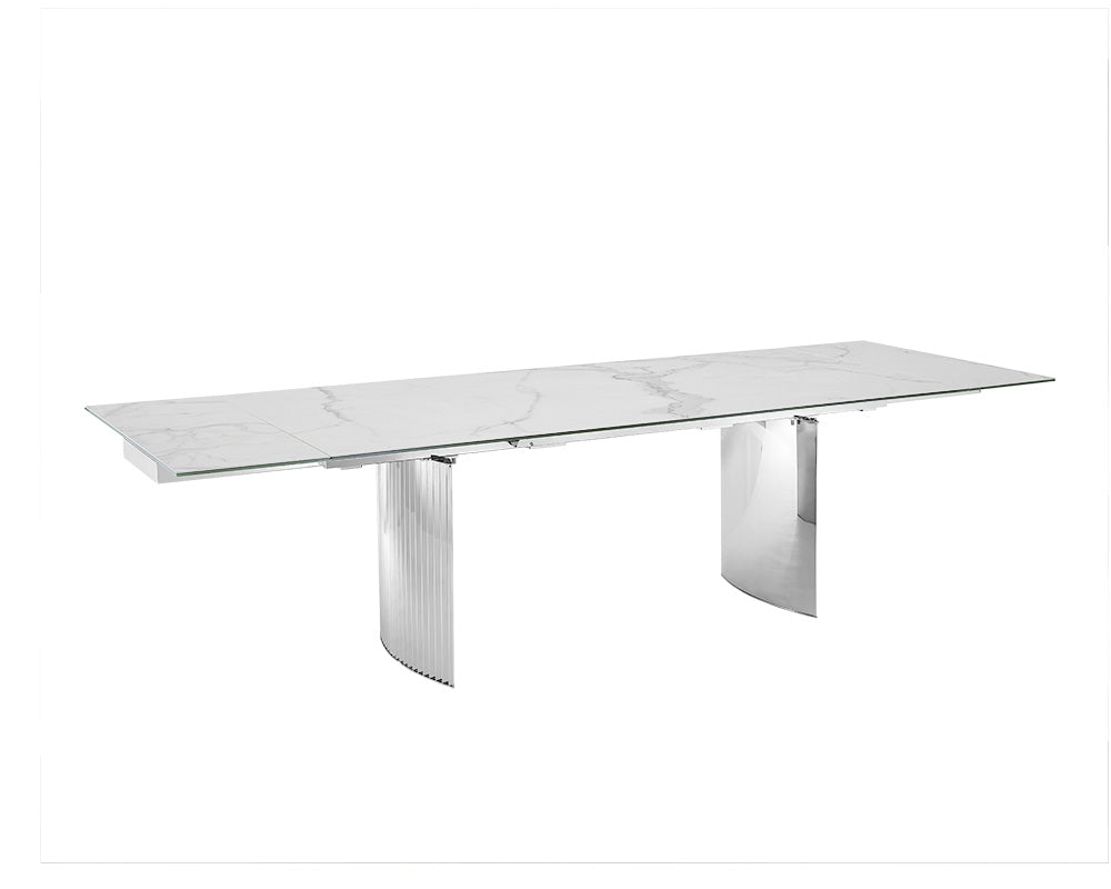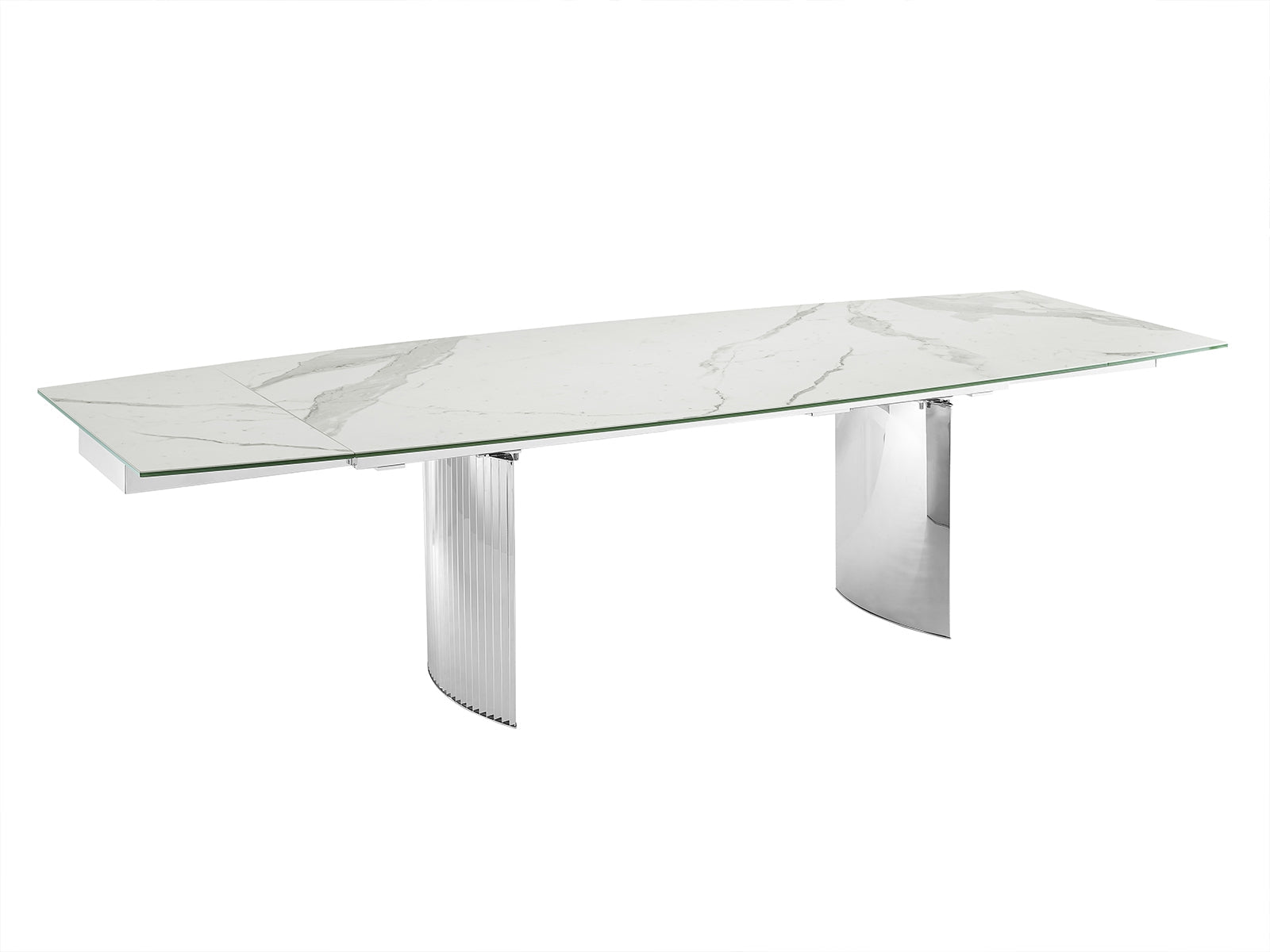 Our Casabianca Home Allegra extendable dining table is manufactured using stainless steel. Quality that will last for many years to come and is backed by our 1 Year limited warranty against manufacturer defects.