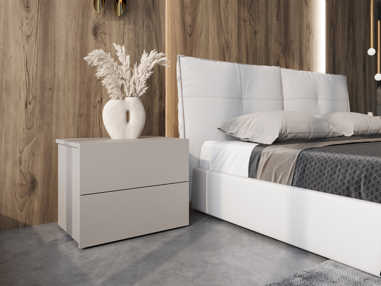 The Casabianca Home Ayla nightstand in taupe matte offers a blend of adaptable style and comfort boasting a modern design that seamlessly complements your bedroom decor. This Ayla nightstand features two soft close drawers adding elegance with functionality to your space.