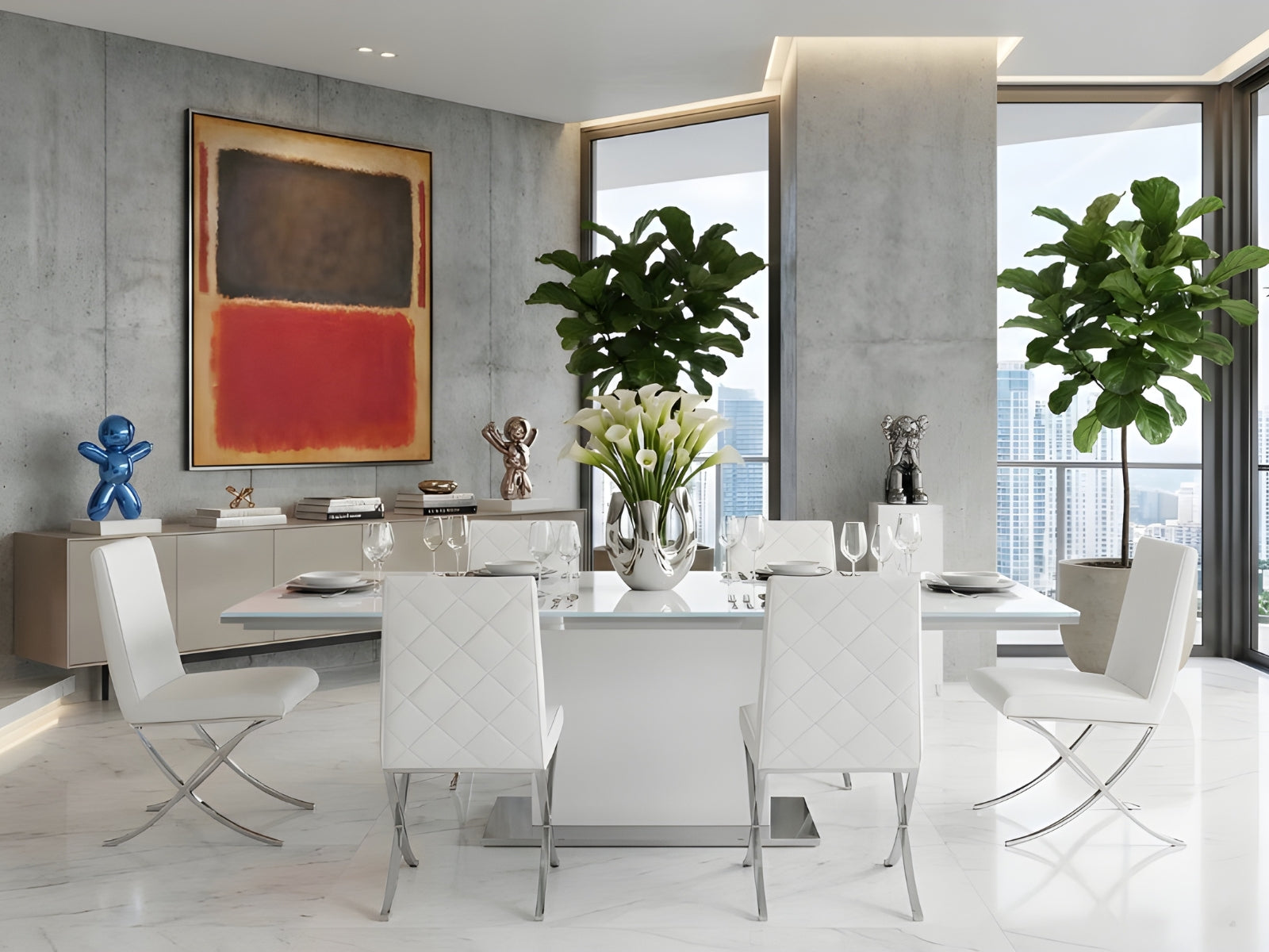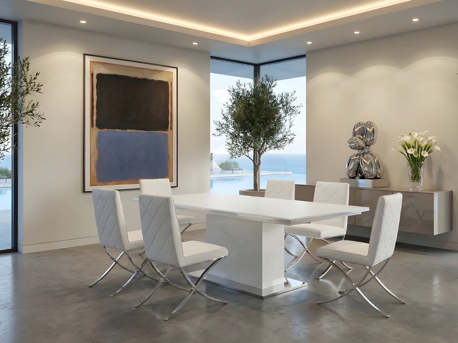 The CasaBianca Home Bianca 90" white dining table offers a clean modern aesthetic with smooth lines and a bright contemporary design. The white top and white base bring a fresh minimalist style that works perfectly in modern coastal and open concept interiors. With a large 90" width the table seats up to 10 guests making it ideal for family meals and entertaining. Built from durable long lasting materials and supported by a limited 1 year warranty the Bianca table delivers stability comfort and modern luxury for everyday use.