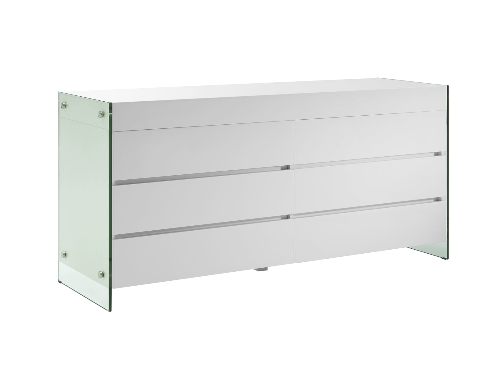 The Casabianca Home Il Vetro dresser in white high gloss offers a blend of adaptable style and comfort boasting a modern design that seamlessly complements your bedroom decor. This Il Vetro dresser features six soft close drawers adding elegance with functionality to your space.