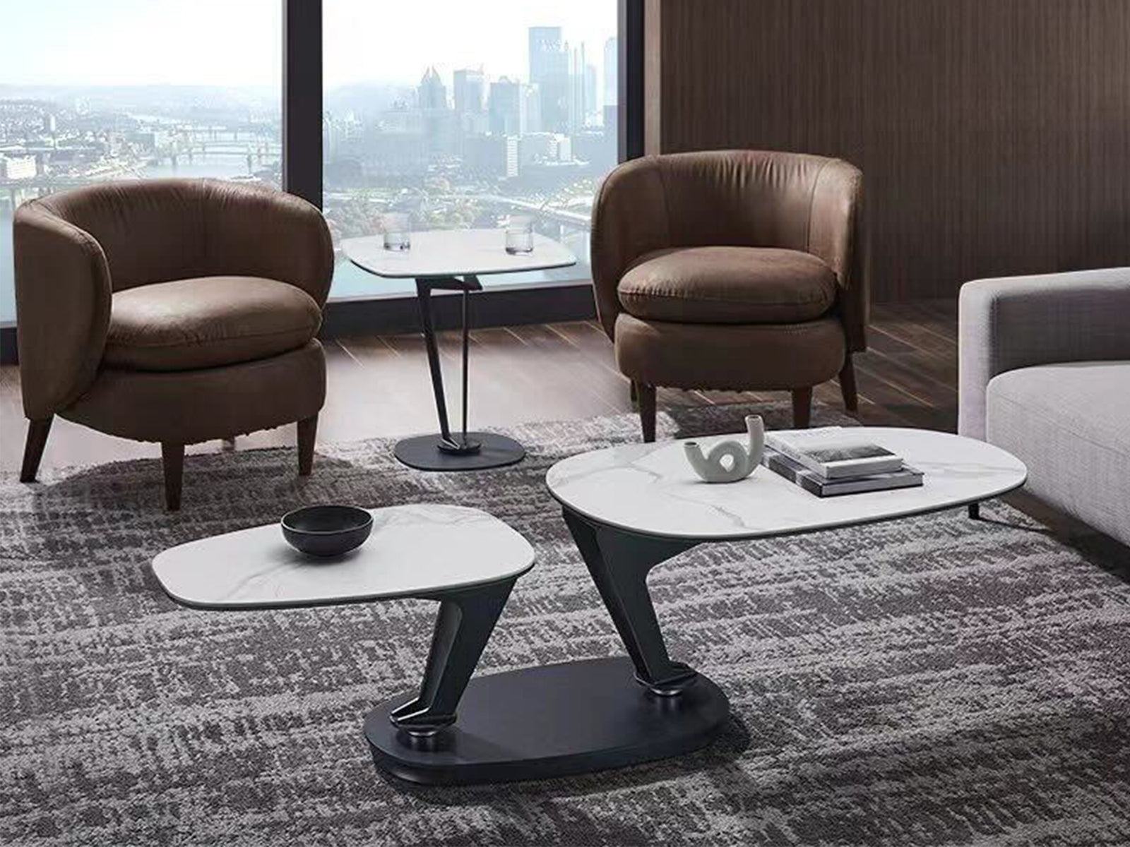The Casabianca Home Leaf end table in white marbled porcelain offers a blend of adaptable style and comfort boasting a modern design that seamlessly complements your home decor.