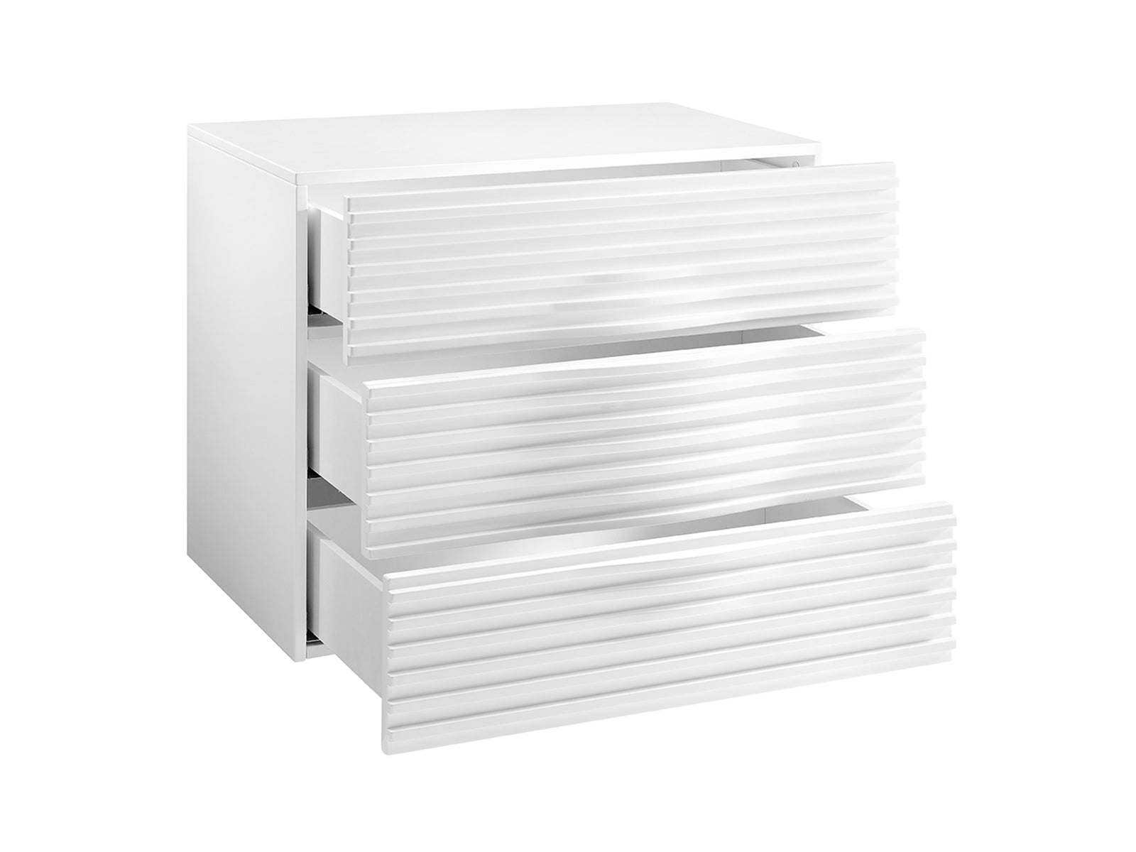 The Casabianca Home Moon dresser in white high gloss offers a blend of adaptable style and comfort boasting a modern design that seamlessly complements your bedroom decor. This Moon dresser features three soft close drawers adding elegance with functionality to your space.