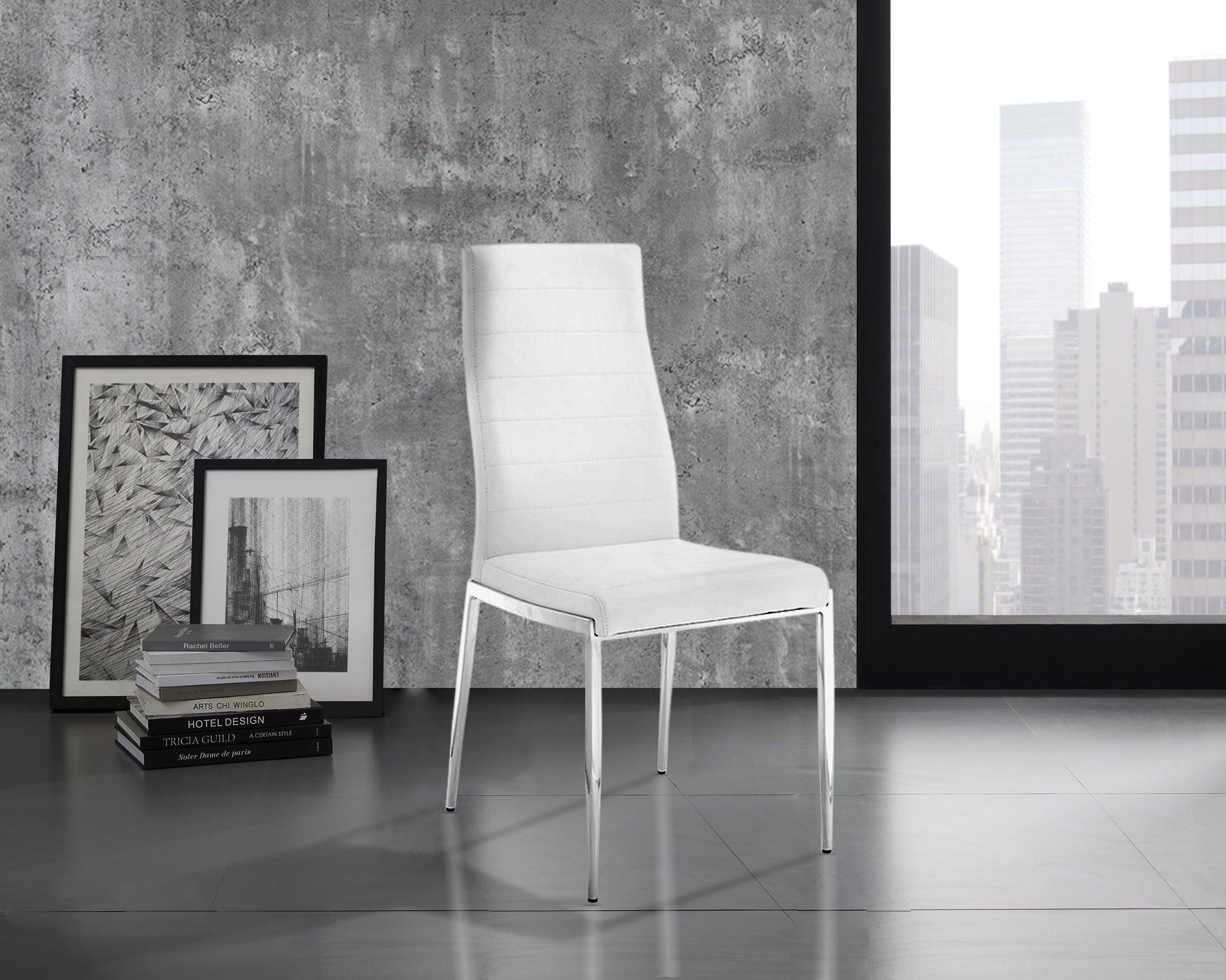 The Casabianca Home Firenze dining chair in white pu leather offers a blend of adaptable style and comfort boasting a modern design that seamlessly complements your dining room decor.
