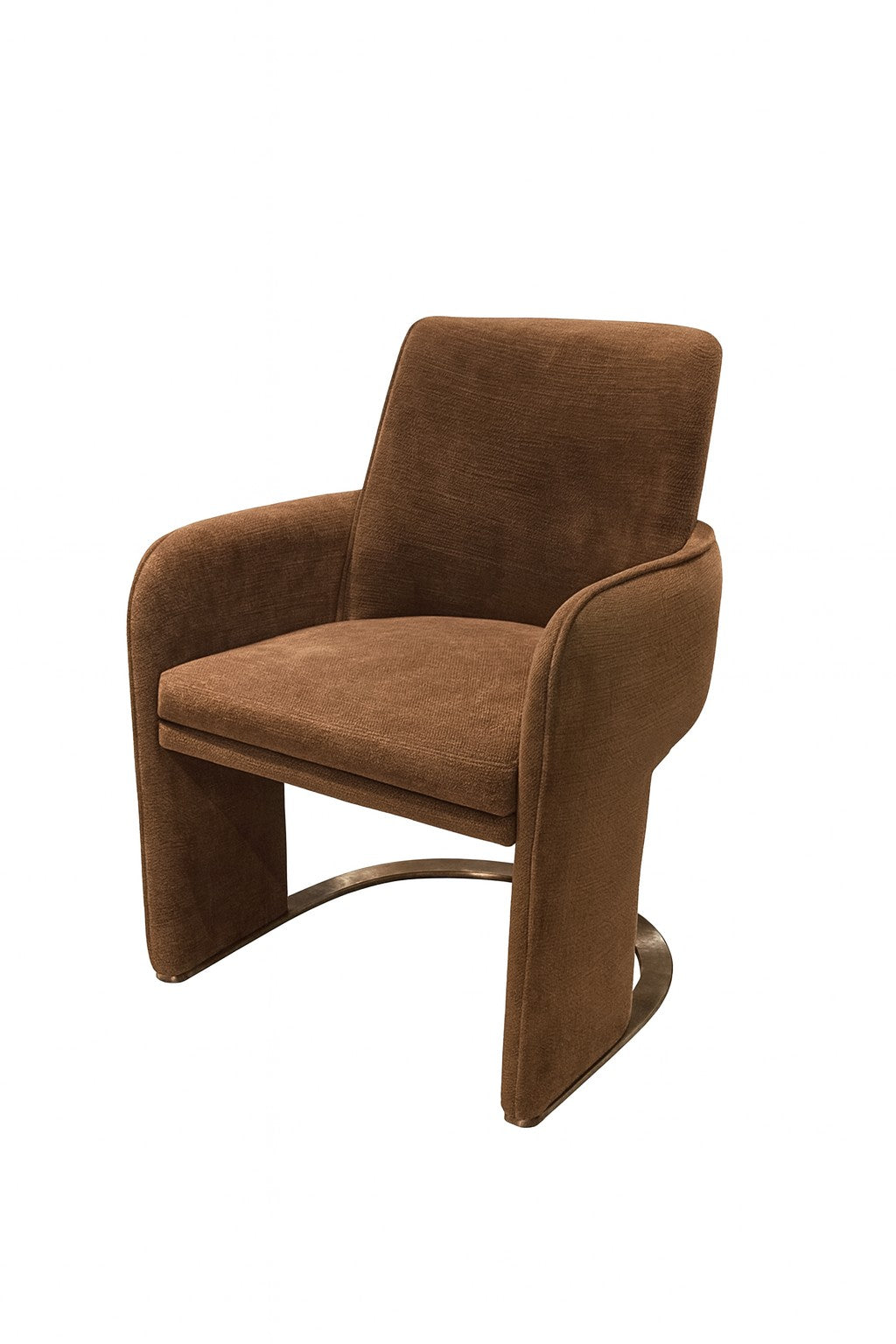 The Casabianca Home Brenda arm dining chair in brown raw linen fabric offers a blend of adaptable style and comfort boasting a modern design that seamlessly complements your dining room decor.