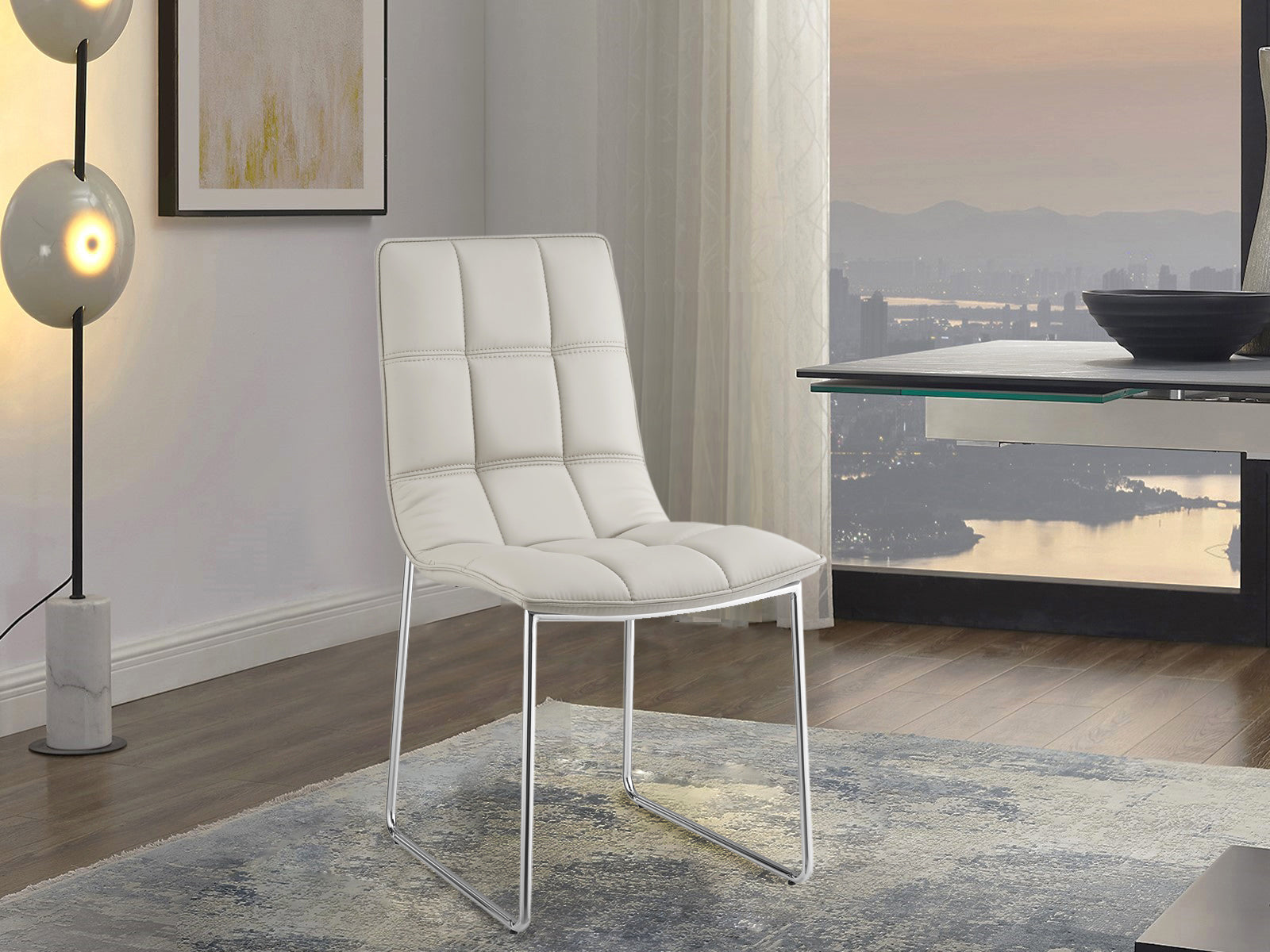 The Casabianca Home Leandro dining chair in taupe pu leather offers a blend of adaptable style and comfort boasting a modern design that seamlessly complements your dining room decor.