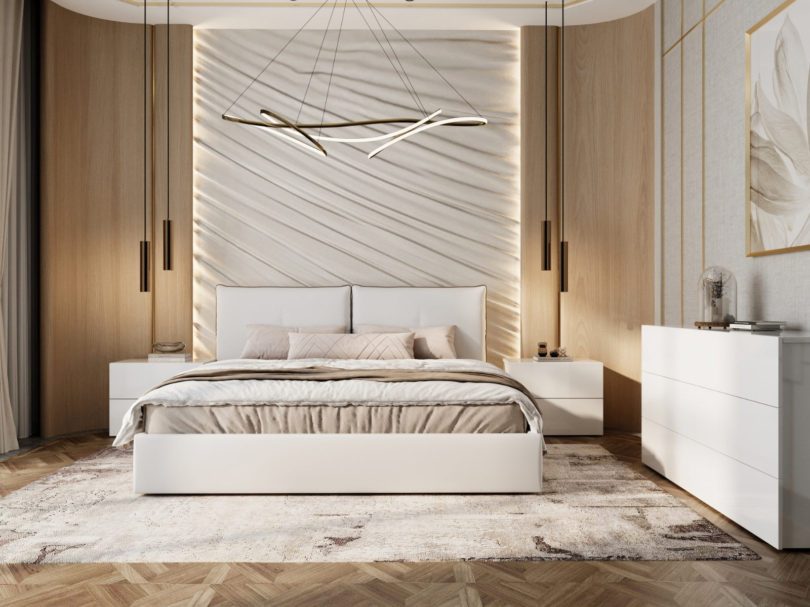 The Aria king storage bed in white pu leather by Casabianca Home provides both versatile and modern style that can easily be integrated into any bedroom decor in your home.