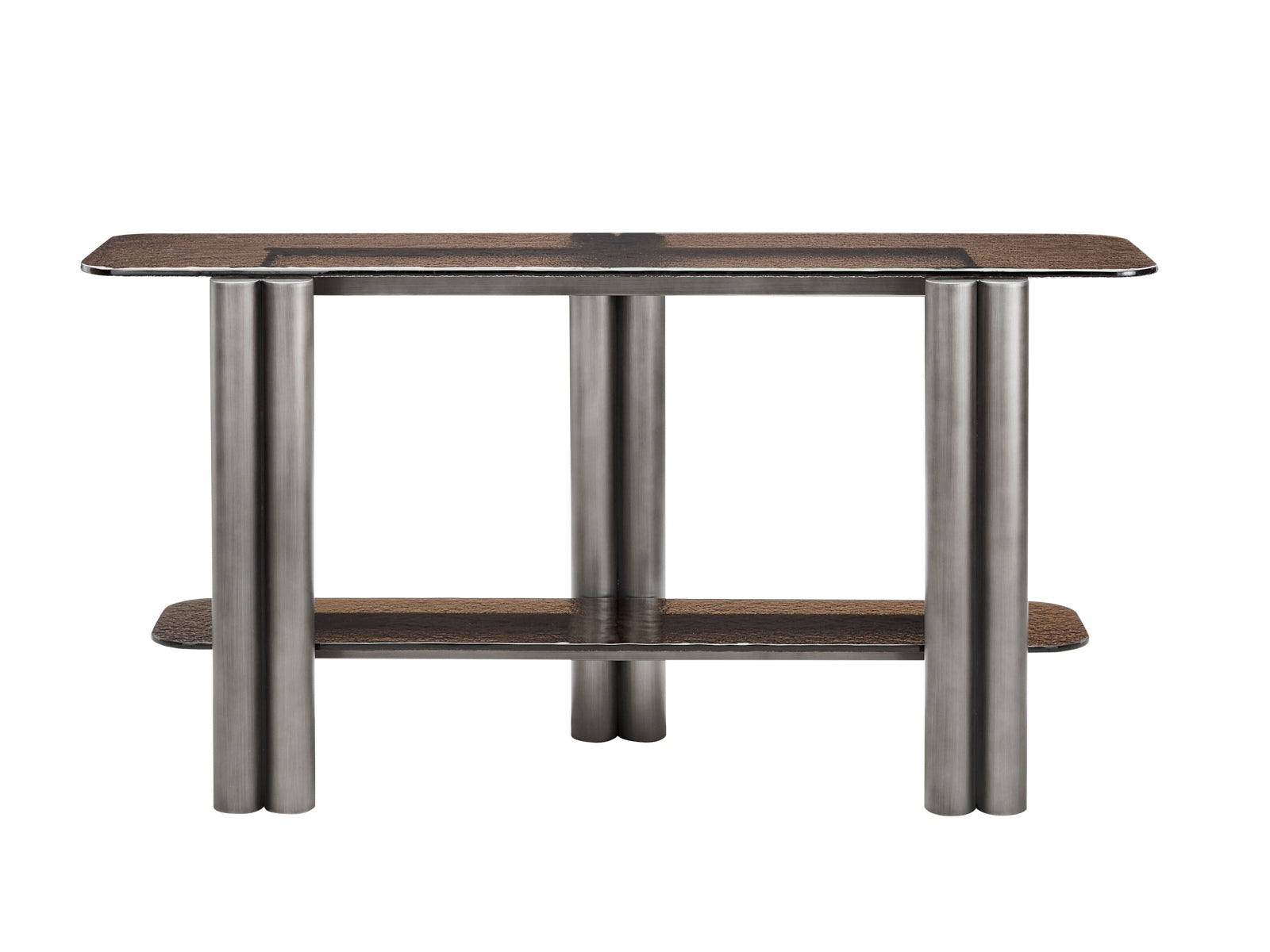 The Casabianca Home Luca console table in brown water wave glass offers a blend of adaptable style and comfort boasting a modern design that seamlessly complements your home decor.