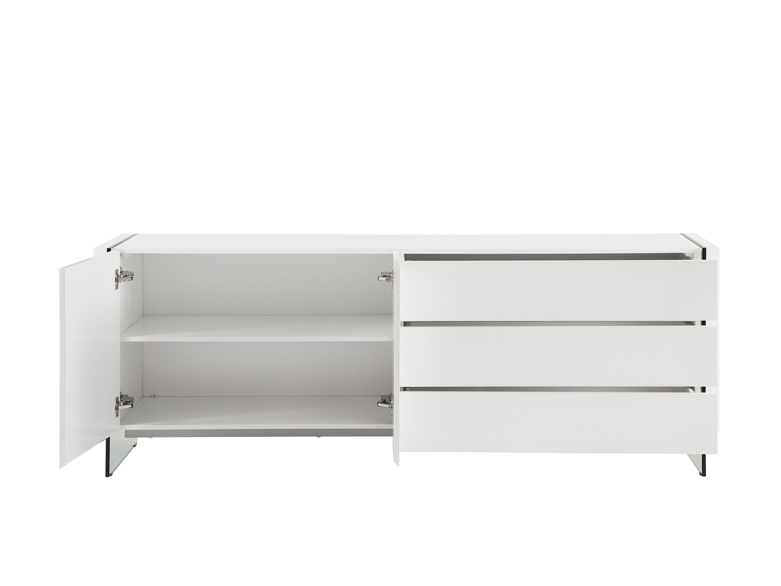 The Casabianca Home Il Vetro buffet in white high gloss with storage offers a blend of adaptable style and comfort boasting a modern design that seamlessly complements your home decor. This Il Vetro buffet features two soft closing cabinets and three drawers adding elegance with functionality to your space.