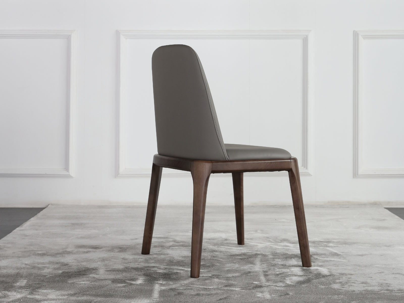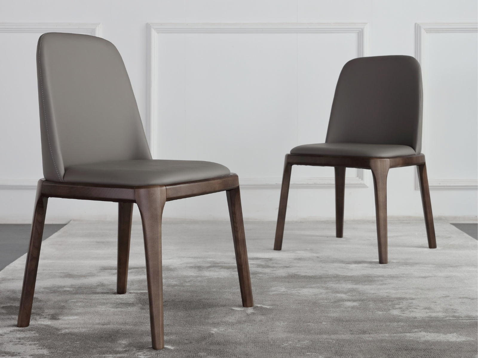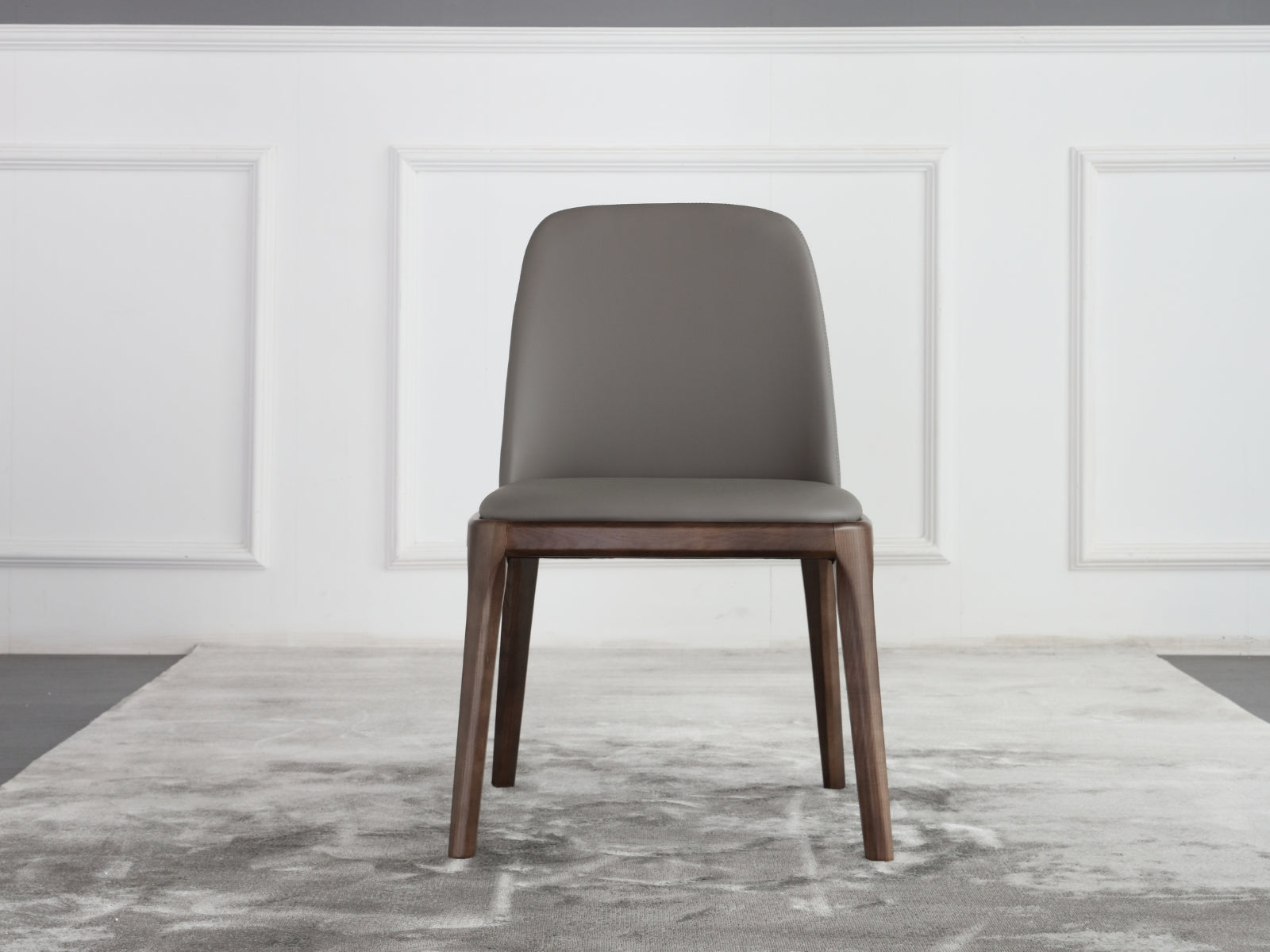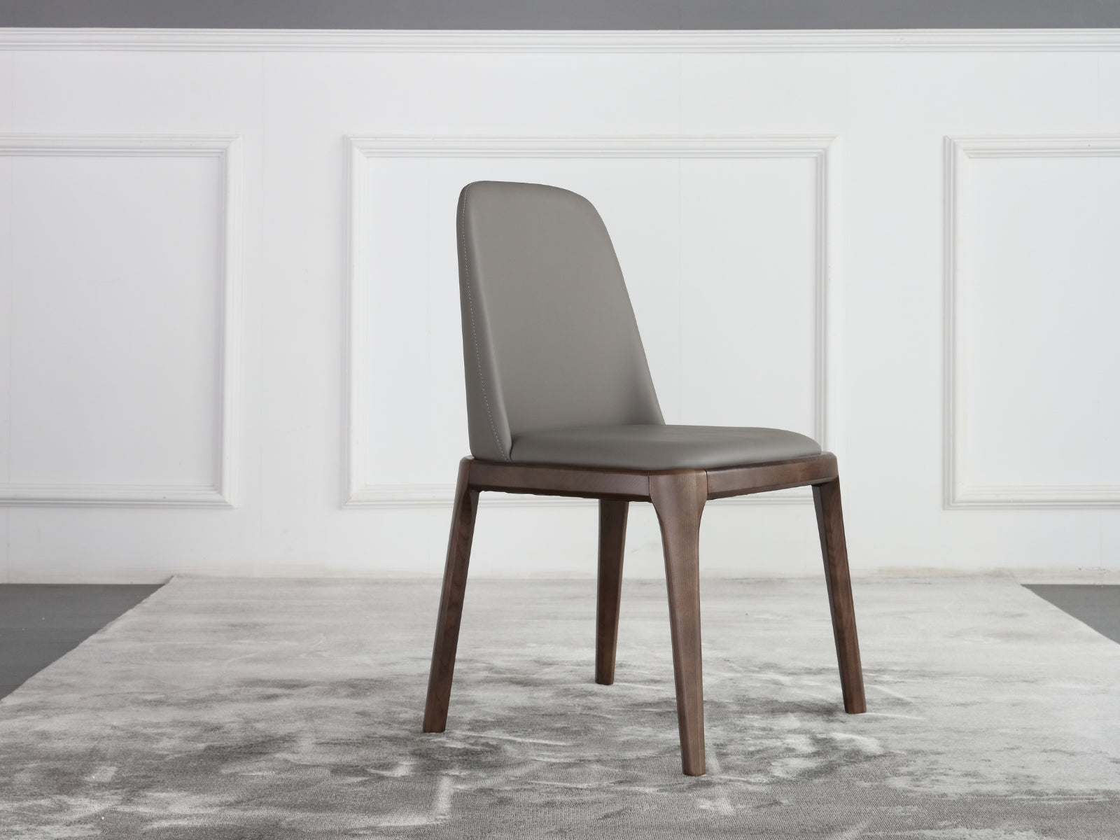 The Casabianca Home Eric dining chair in gray pu-leather offers a blend of adaptable style and comfort boasting a modern design that seamlessly complements your dining room decor.