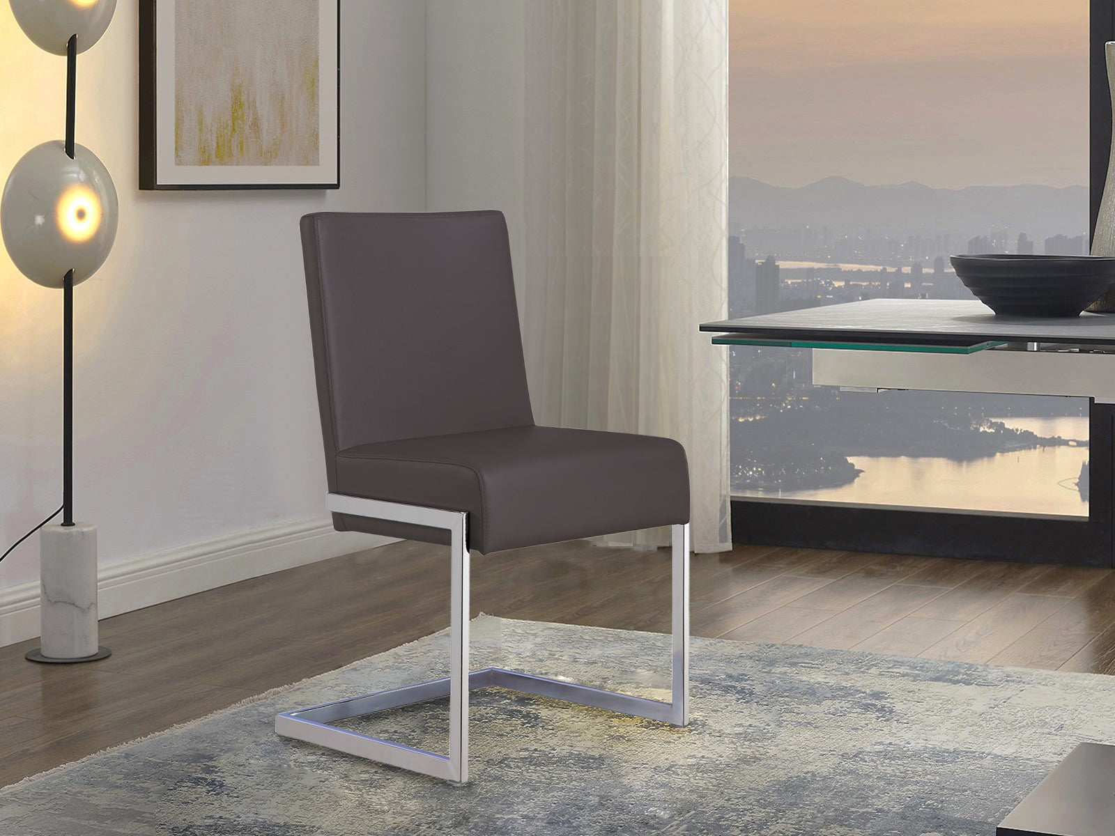 The Casabianca Home Fontana dining chair in gray pu leather offers a blend of adaptable style and comfort boasting a modern design that seamlessly complements your dining room decor.
