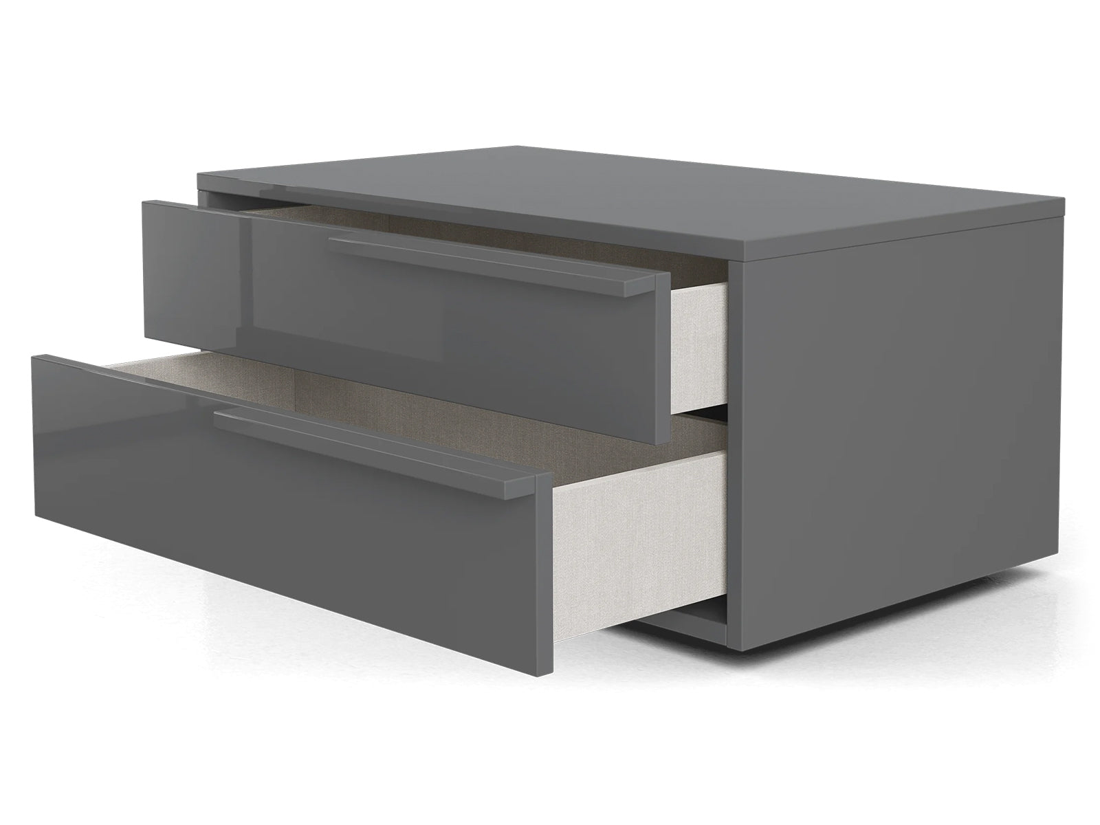 The Casabianca Home Alessio Left nightstand in dark gray high gloss offers a blend of adaptable style and comfort boasting a modern design that seamlessly complements your bedroom decor. This Alessio Left nightstand features two soft close drawers adding elegance with functionality to your space.
