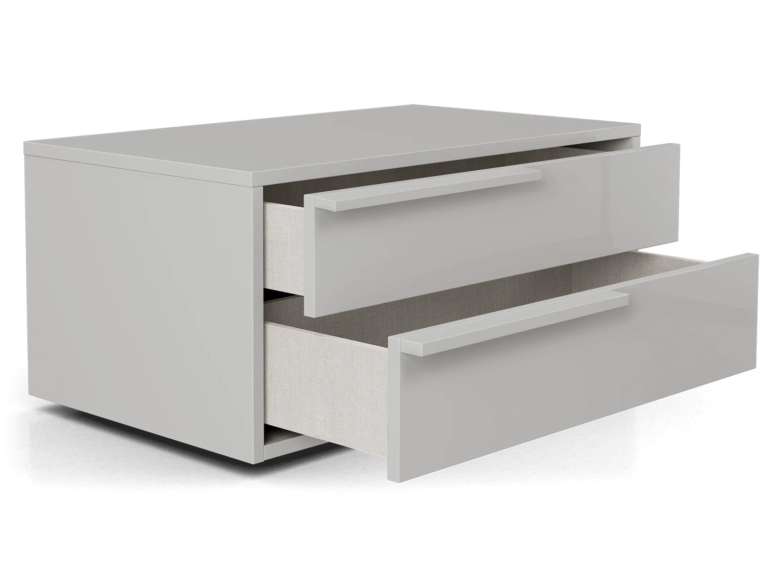 The Casabianca Home Alessio Right nightstand in taupe high gloss offers a blend of adaptable style and comfort boasting a modern design that seamlessly complements your bedroom decor. This Alessio Right nightstand features two soft close drawers adding elegance with functionality to your space.