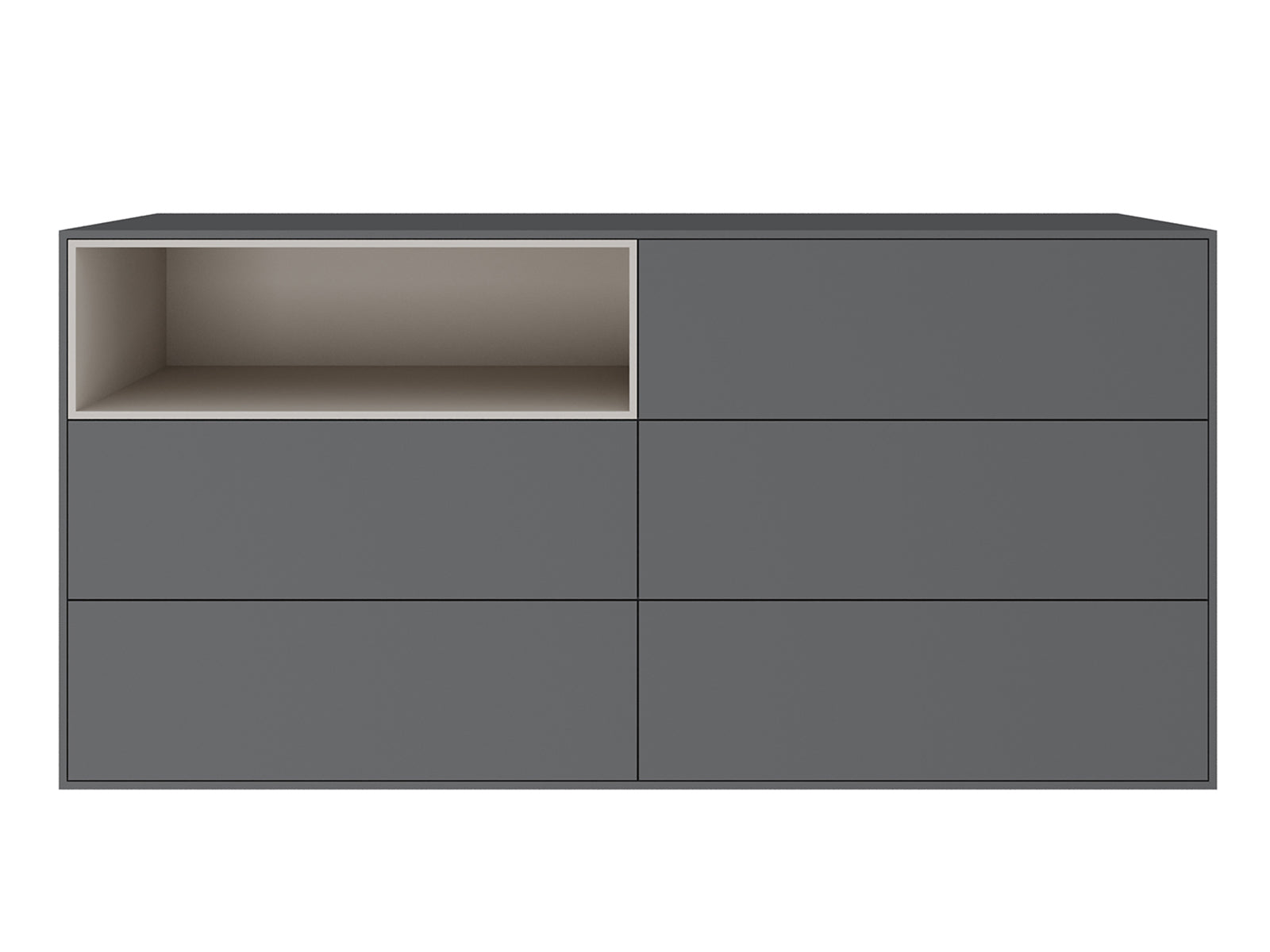 The Casabianca Home Santino dresser in dark gray matte offers a blend of adaptable style and comfort boasting a modern design that seamlessly complements your bedroom decor. This Santino dresser features five push open drawers and one open storage adding elegance with functionality to your space.