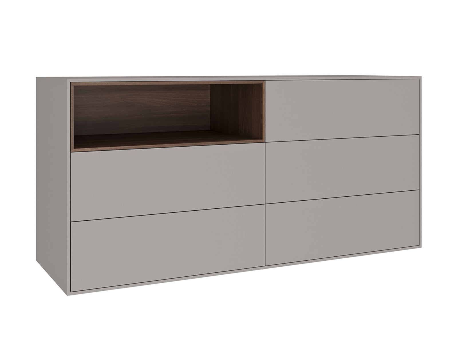 The Casabianca Home Santino dresser in taupe matte offers a blend of adaptable style and comfort boasting a modern design that seamlessly complements your bedroom decor. This Santino dresser features five push open drawers and one open storage adding elegance with functionality to your space.