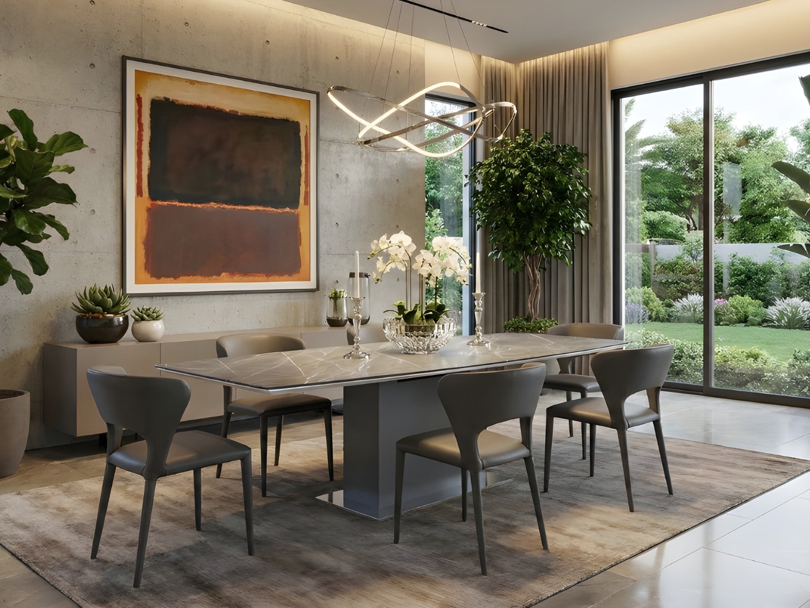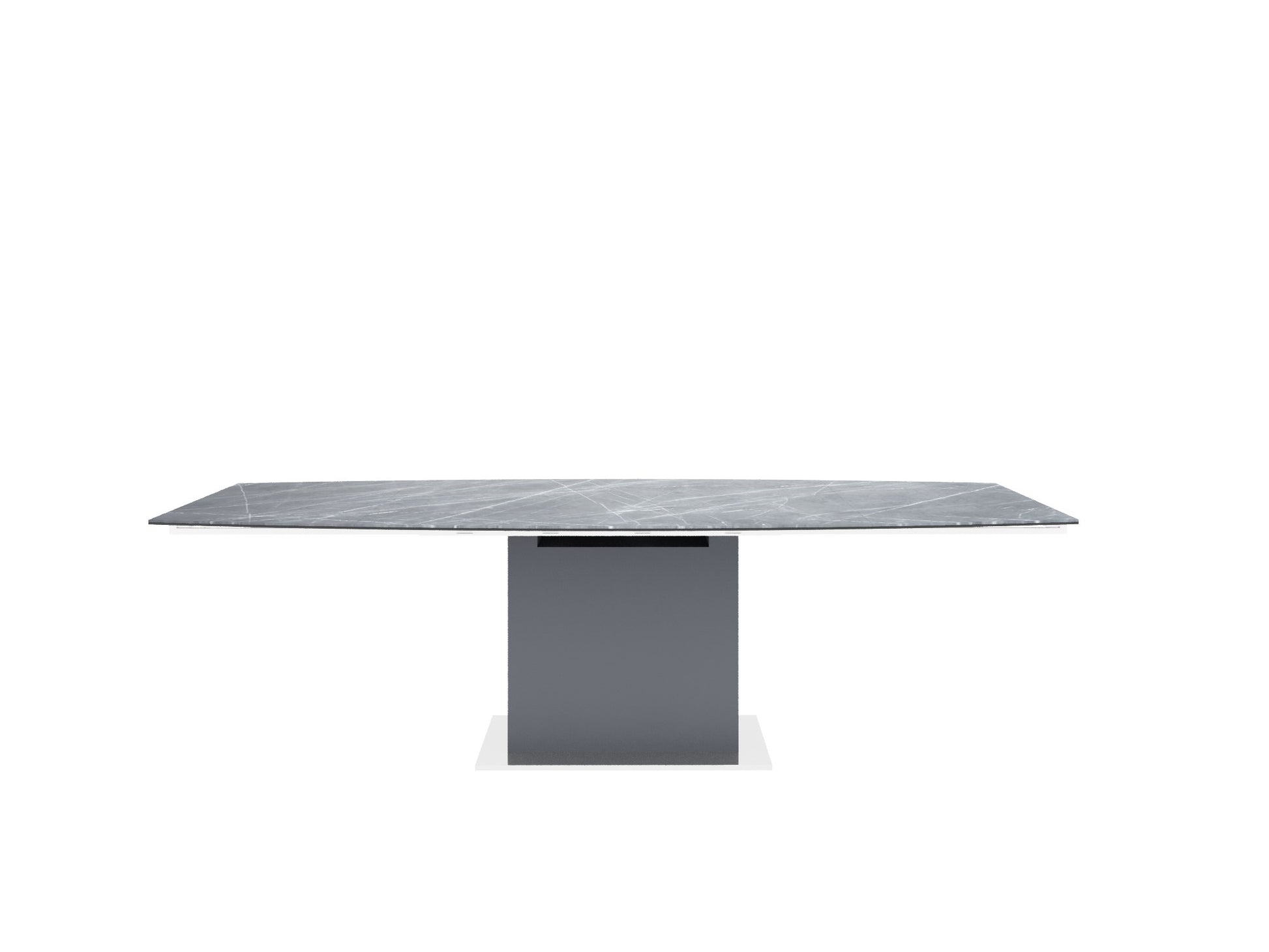 The Casabianca Home Olivia manual dining table with gray base and white marbled porcelain top offers a blend of adaptable style and comfort boasting a modern design that seamlessly complements your dining room decor. This Olivia manual dining table extends from 71" to 103" providing ample space for 6 - 12 seats.