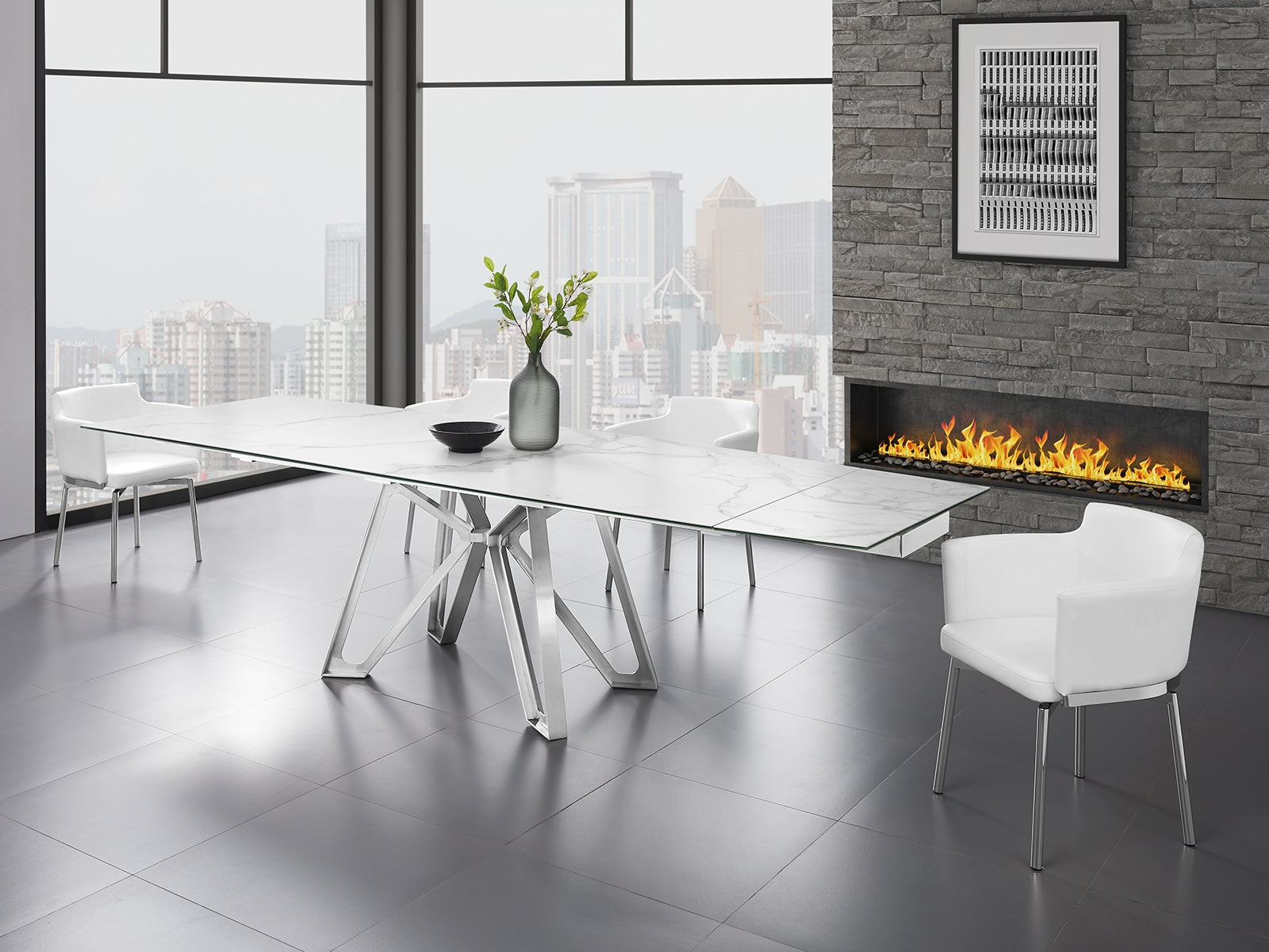 Our Casabianca Home Dcota extendable dining table is manufactured using brushed stainless steel. Quality that will last for many years to come and is backed by our 1 Year limited warranty against manufacturer defects.