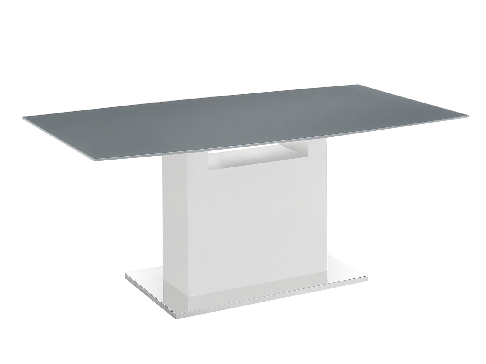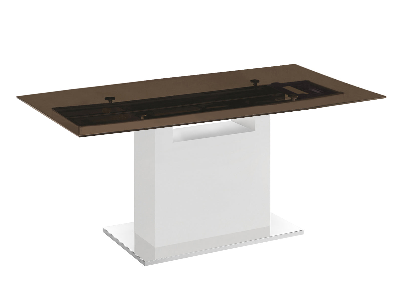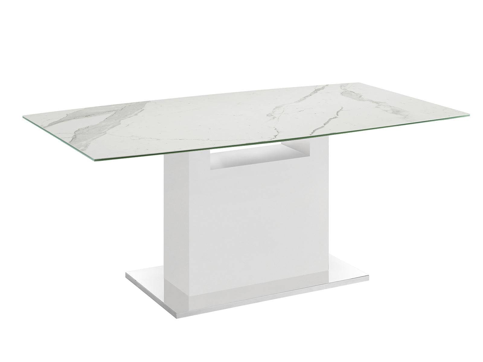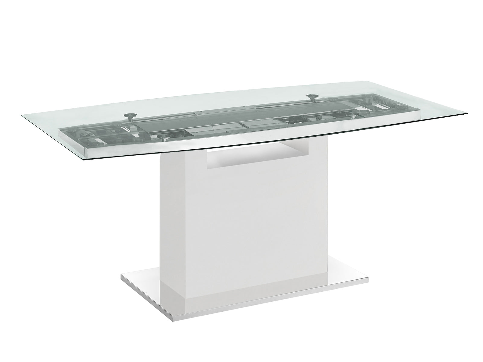 The Casabianca Home Olivia dining table with white base and clear top offers a blend of adaptable style and comfort boasting a modern design that seamlessly complements your dining room decor.