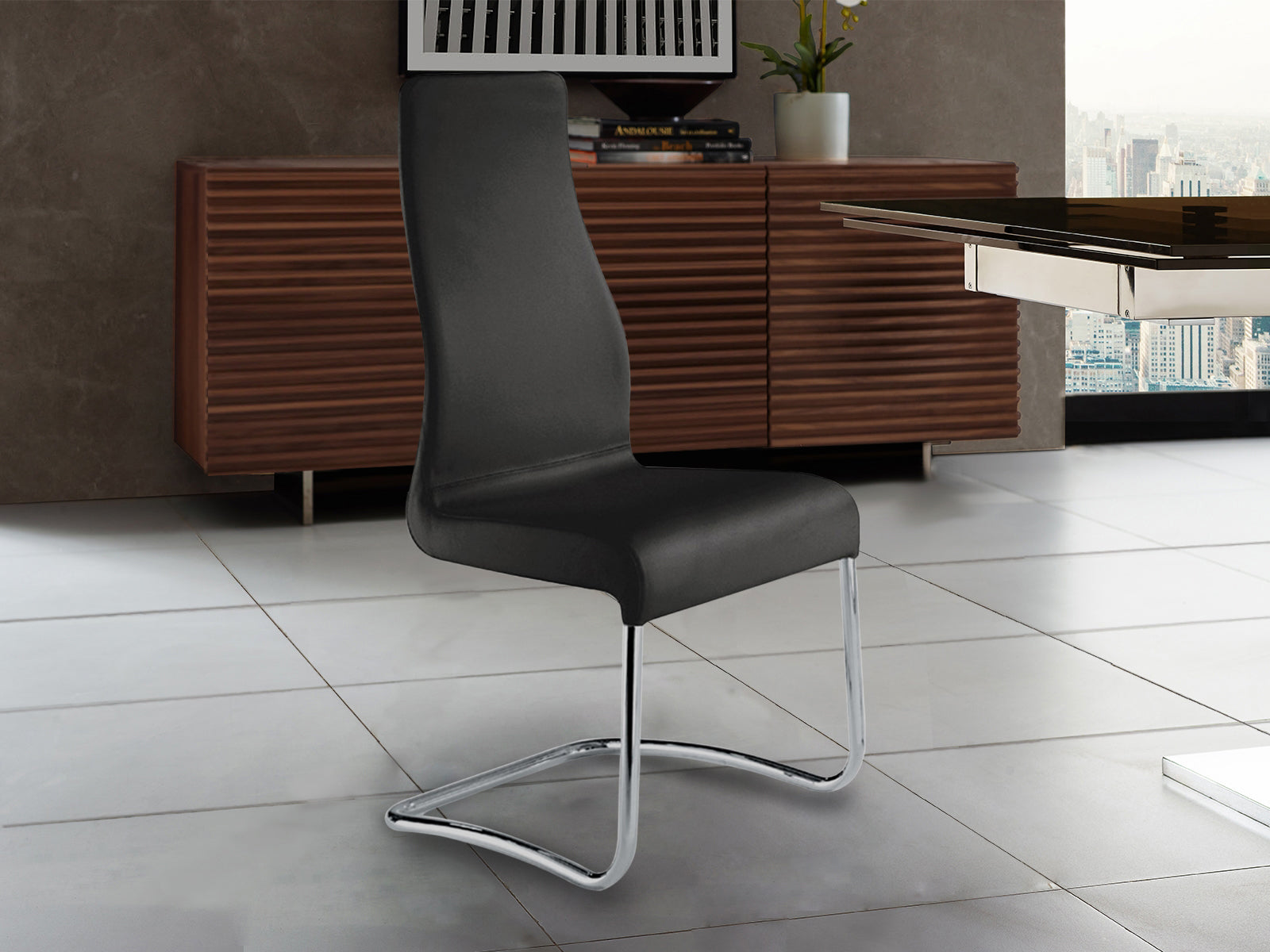 The Casabianca Home Florence dining chair in black top grain leather offers a blend of adaptable style and comfort boasting a modern design that seamlessly complements your dining room decor.