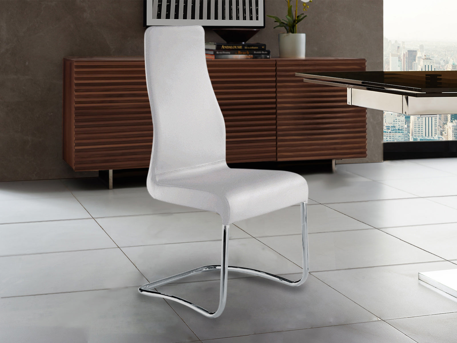 The Casabianca Home Florence dining chair in white top grain leather offers a blend of adaptable style and comfort boasting a modern design that seamlessly complements your dining room decor.