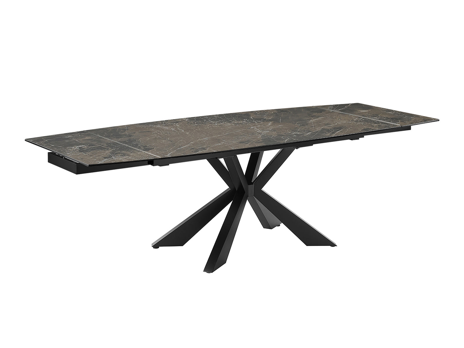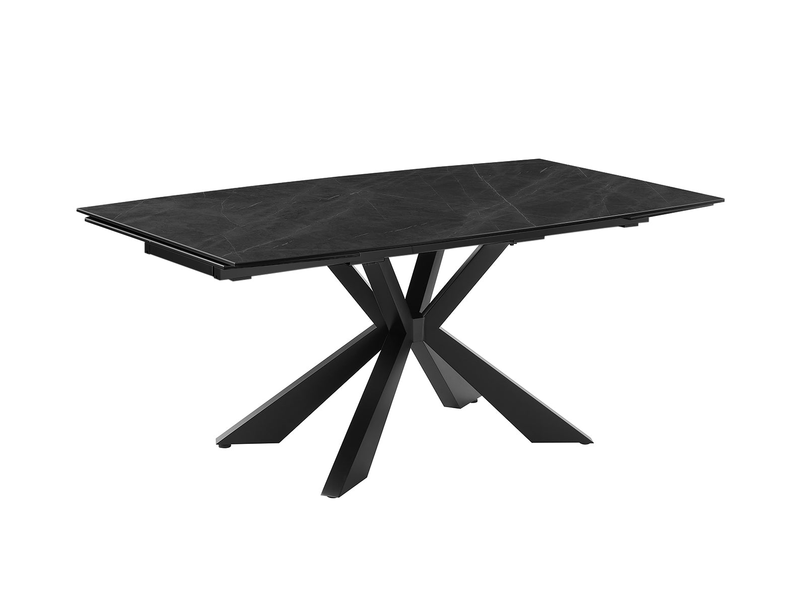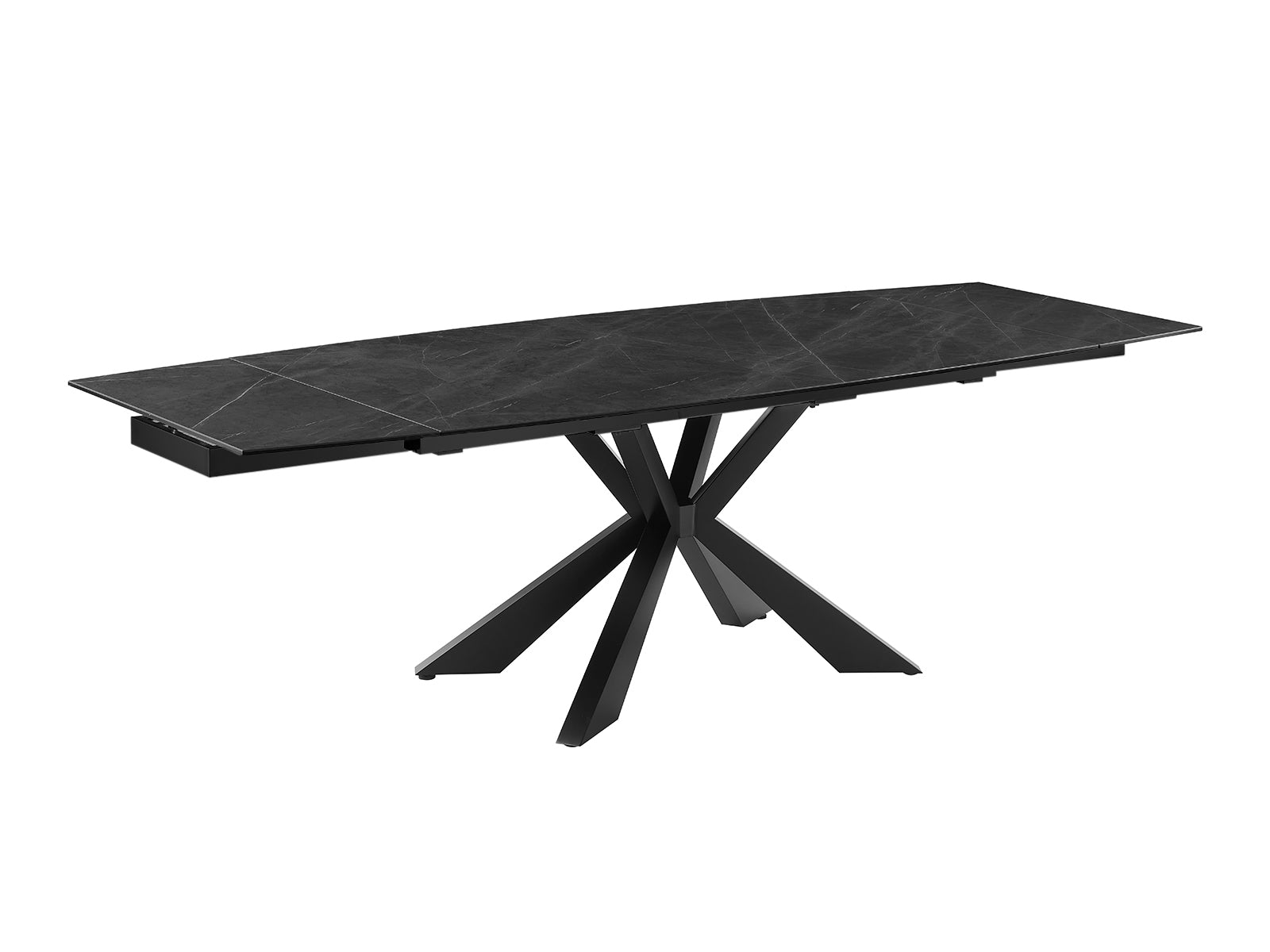 The Casabianca Home Icon manual dining table with black base and black marbled porcelain top offers a blend of adaptable style and comfort boasting a modern design that seamlessly complements your dining room decor. This Icon manual dining table extends from 71" to 103" providing ample space for 6 - 12 seats.
