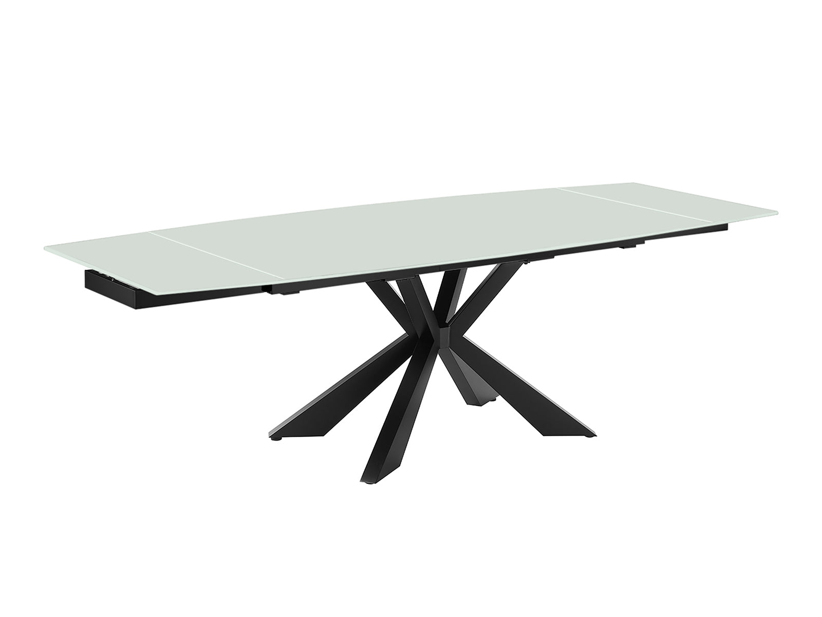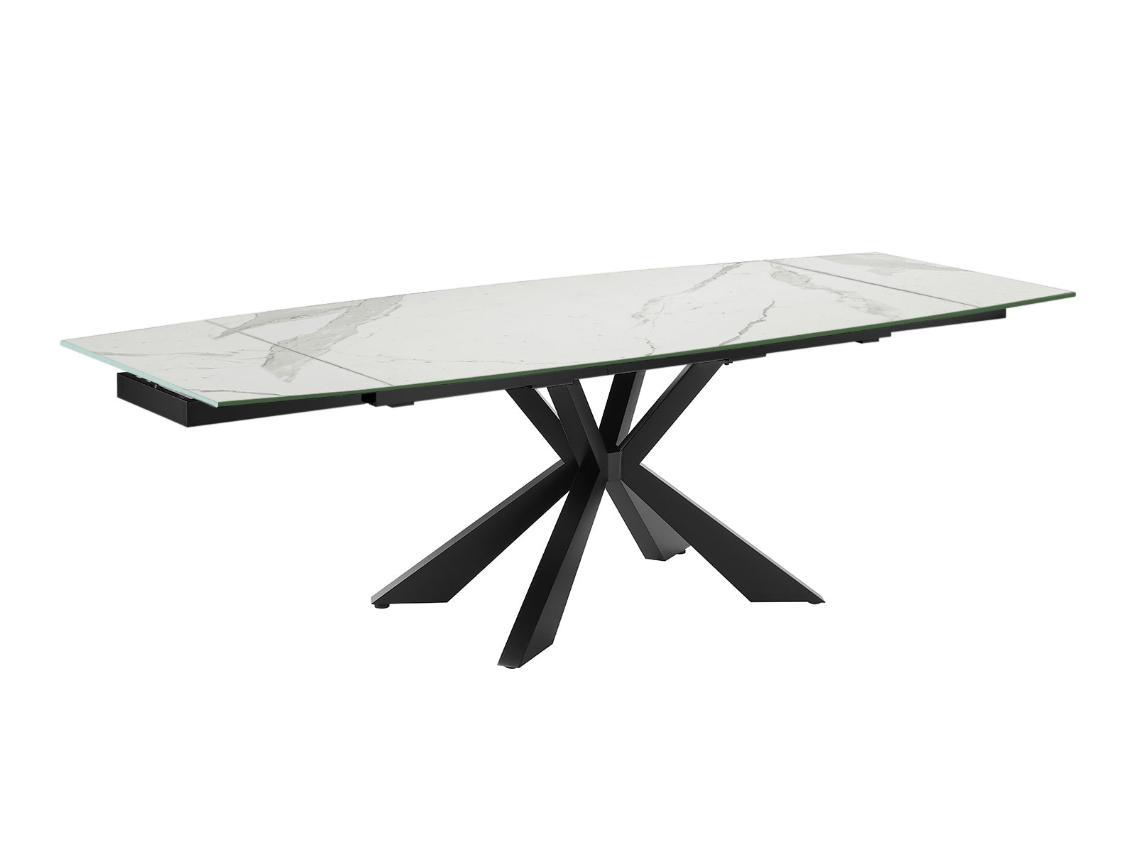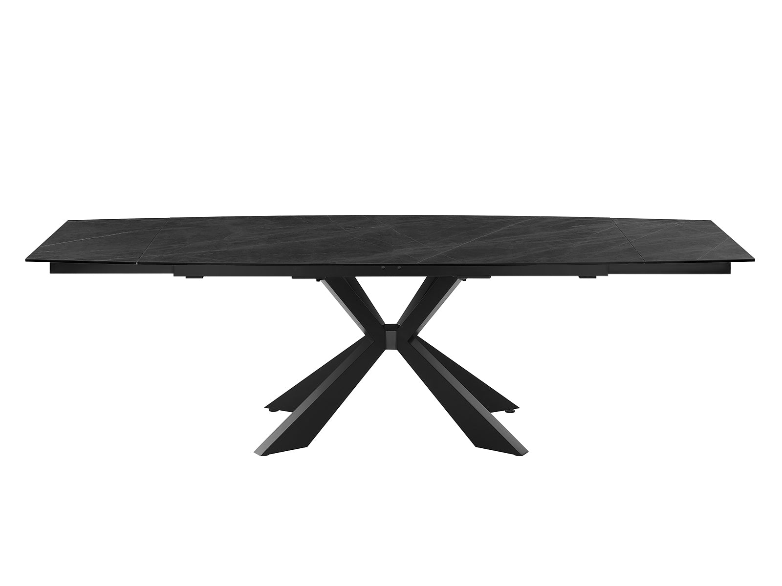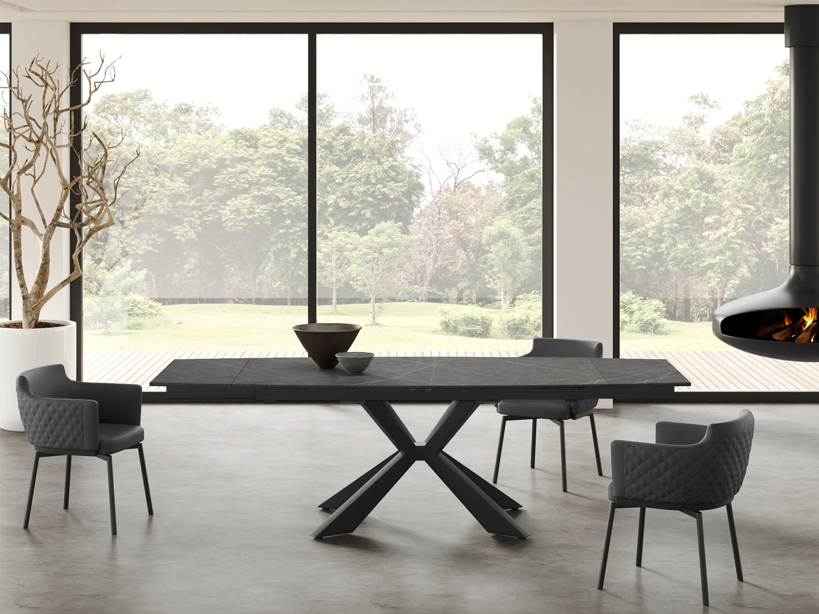 The Casabianca Home Icon manual dining table with black base and black marbled porcelain top offers a blend of adaptable style and comfort boasting a modern design that seamlessly complements your dining room decor. This Icon manual dining table extends from 71" to 103" providing ample space for 6 - 12 seats.