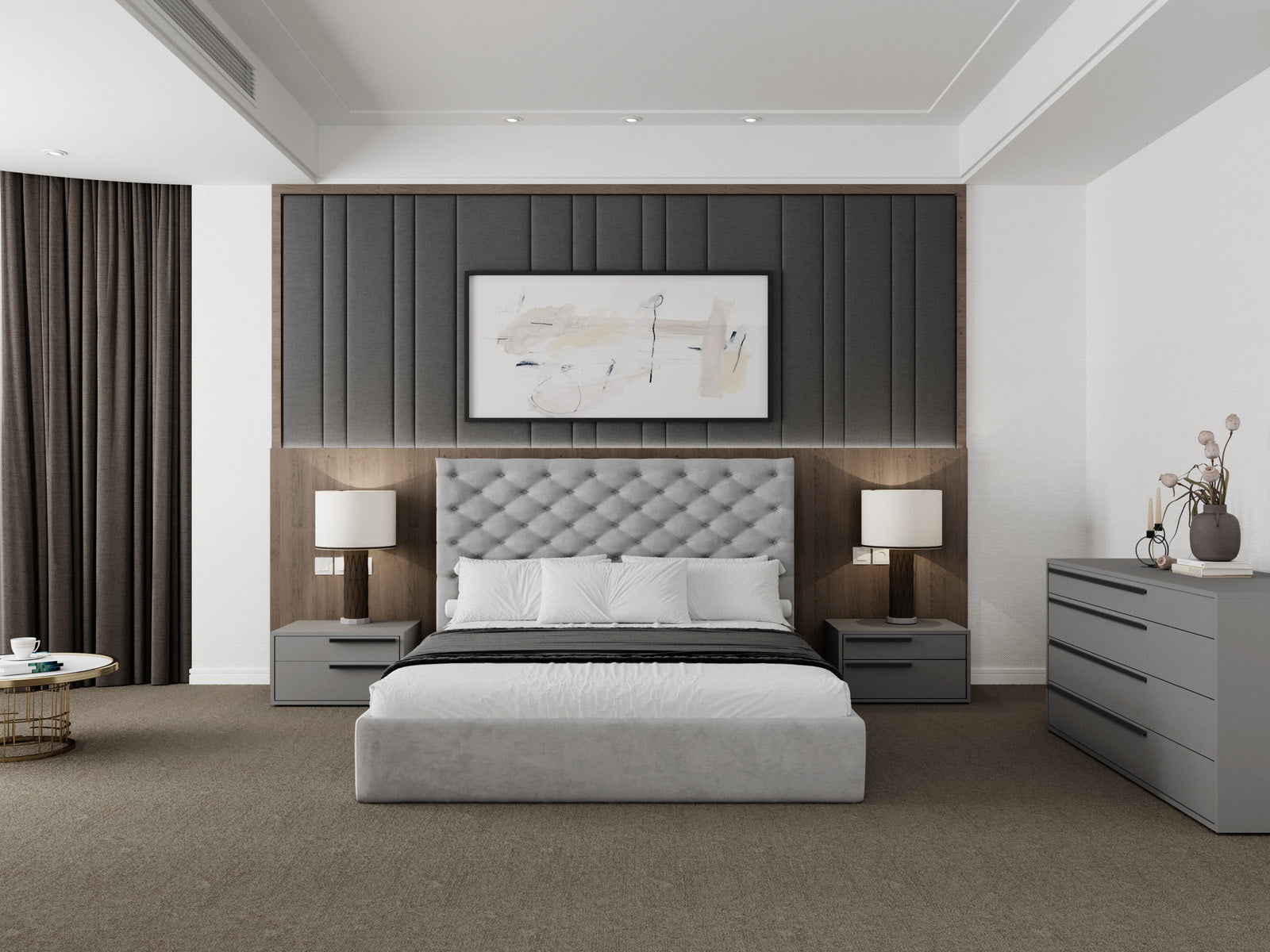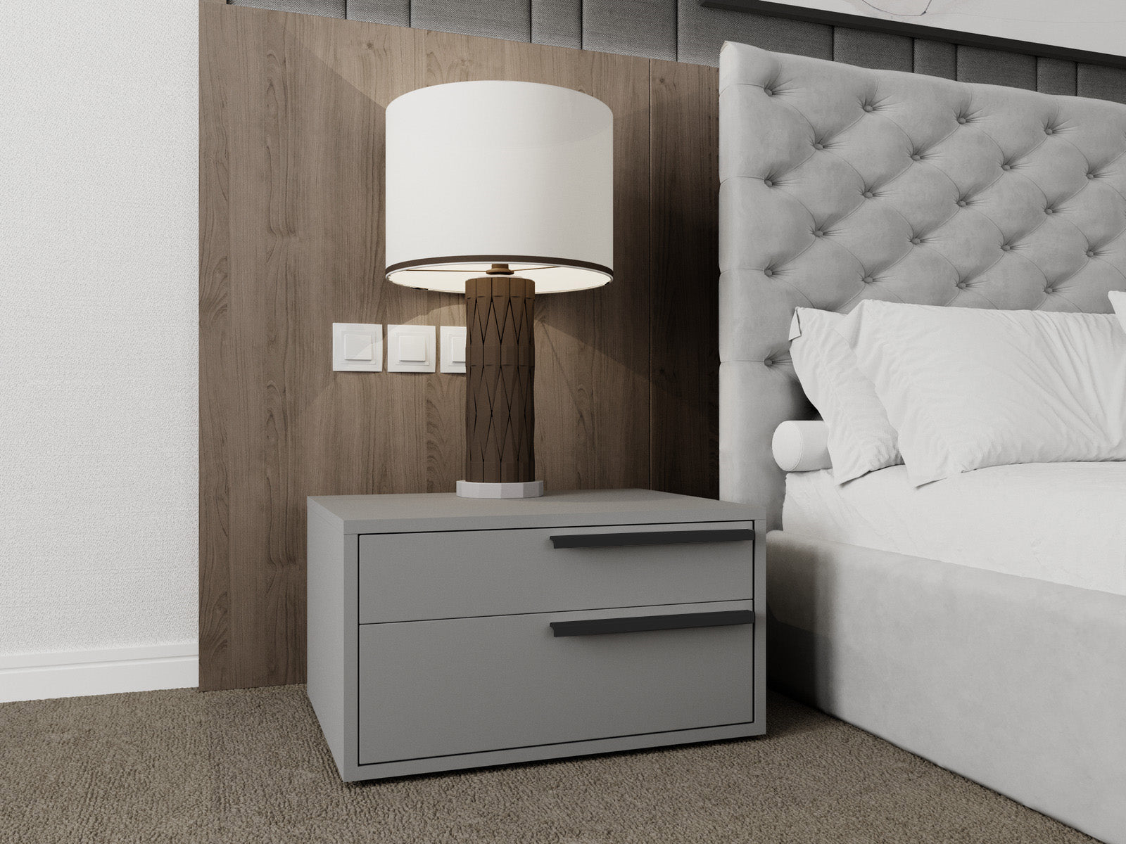The Casabianca Home Carter Right nightstand in gray matte offers a blend of adaptable style and comfort boasting a modern design that seamlessly complements your bedroom decor. This Carter Right nightstand features two soft close drawers adding elegance with functionality to your space.