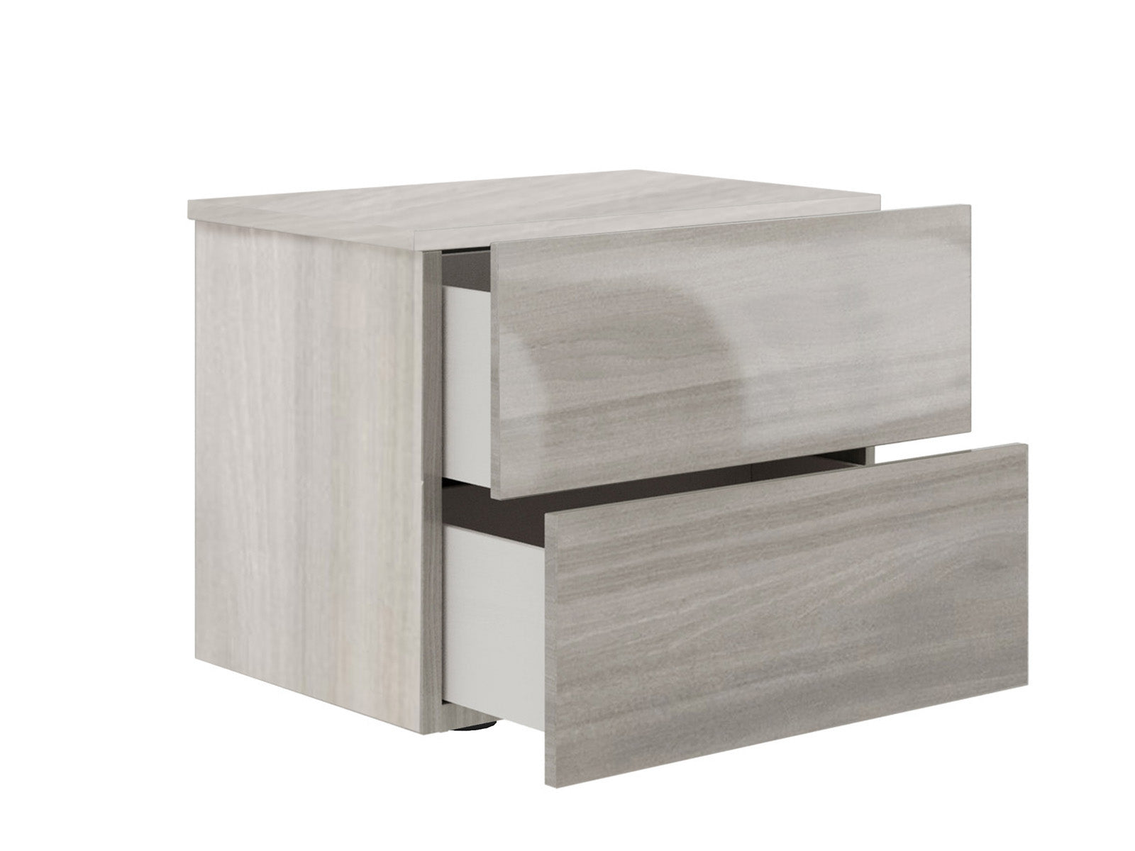 The Casabianca Home Ayla nightstand in light gray high gloss offers a blend of adaptable style and comfort boasting a modern design that seamlessly complements your bedroom decor. This Ayla nightstand features two soft close drawers adding elegance with functionality to your space.